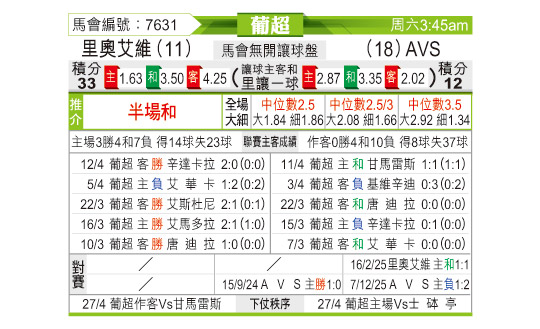 [葡超] 里奥阿维vsAVS俱乐部
