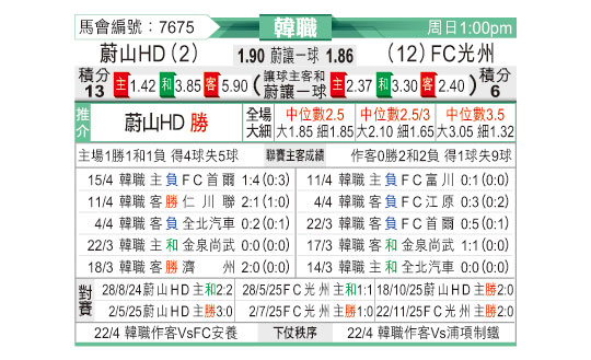 [韩K联] 蔚山HDvs光州FC