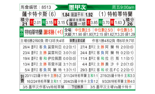 [墨西甲] 扎卡特卡斯vs帕蒂特兰德莫雷洛斯