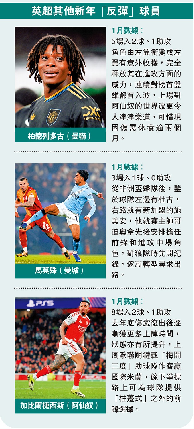 1月數據:5場入2球、1助攻